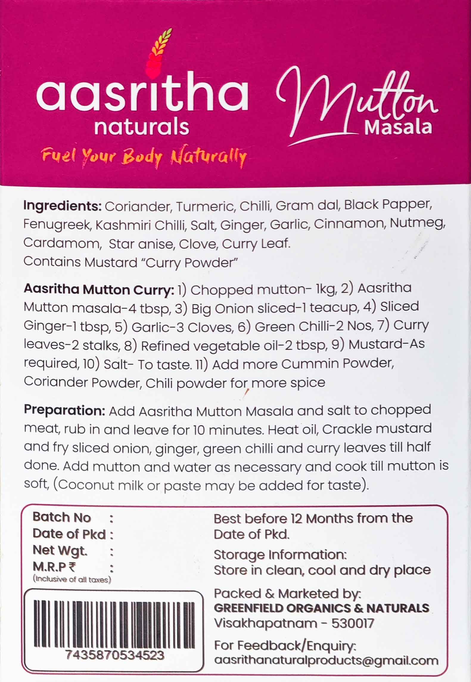 Enhance your mutton dishes with our Mutton Masala, an expertly crafted blend of premium spices roasted and ground to perfection. This flavorful mix brings depth, aroma, and a rich, authentic taste to your curries, gravies, and dry preparations.